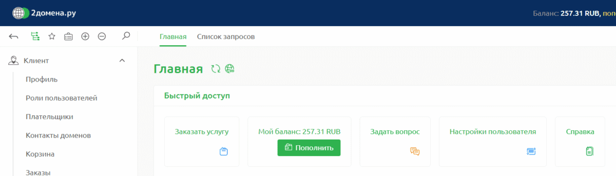 В зависимости от настроек системы биллинга 2domena.ru в личном кабинете доступно два вида платежей: