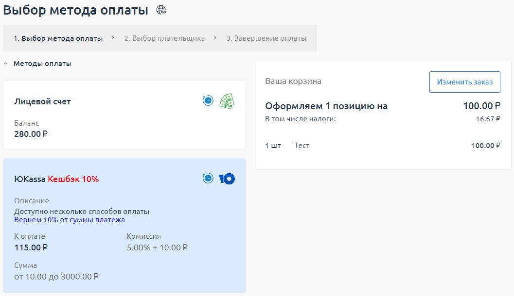 После того как вы добавили услугу в корзину, вы можете оплатить услугу как с лицевого счёта, так и любым доступным методом оплаты напрямую.